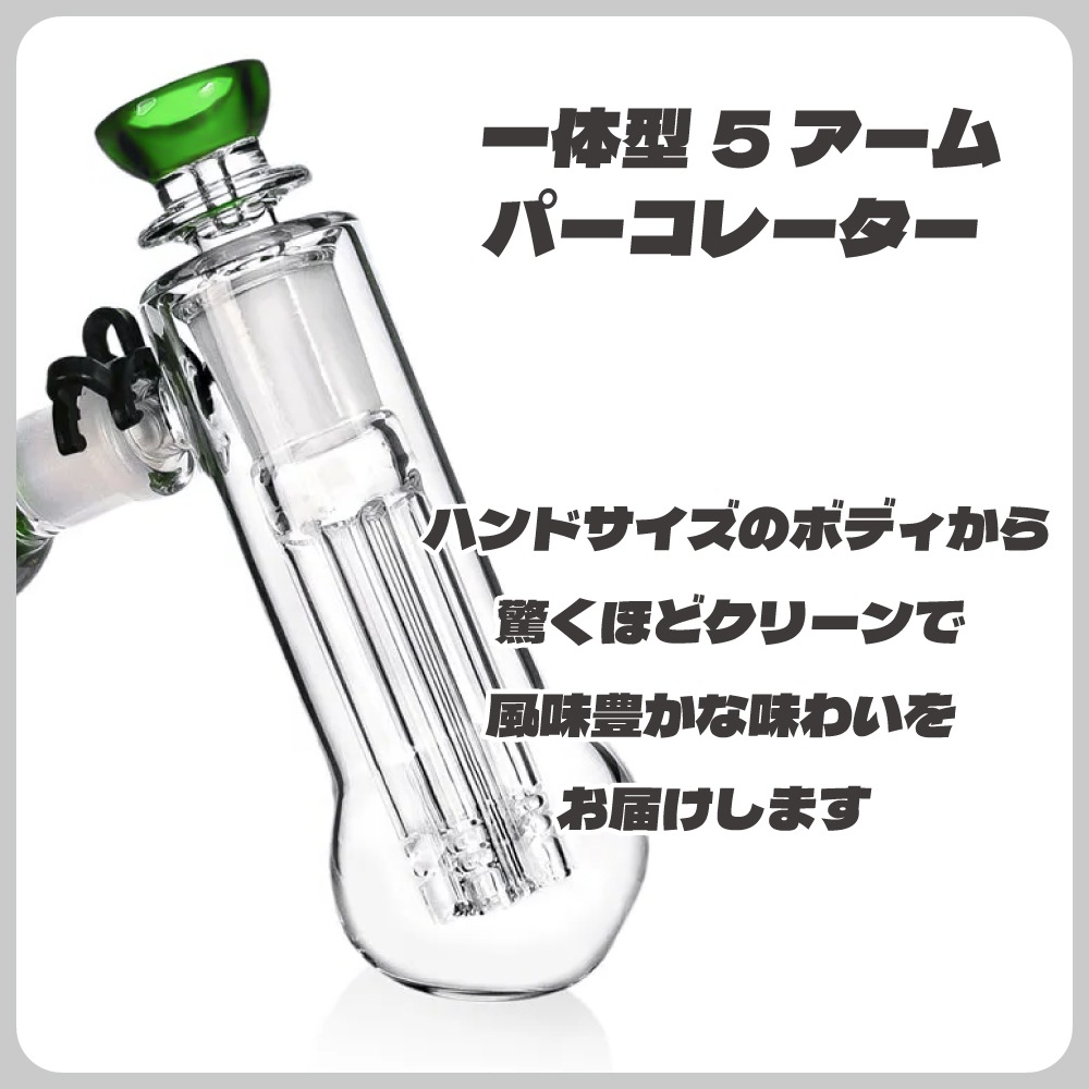 一体型の5アームパーコレーターは優れた煙の拡散性と水ろ過性能を備え、ハンドサイズのボディから驚くほどクリーンで風味豊かな味わいをお届けします。